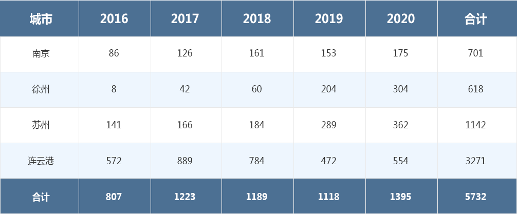 江蘇省國(guó)際班列歷年開行數(shù)量(折算列)
